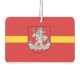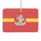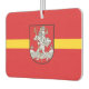 Air Freshener con diseño con bandera de Vilnius, capital de Lituania; bandera roja con franja amarilla y escudos de armas con dos leones dorados sosteniendo un escudo en el centro