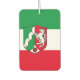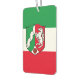 Aire Freshener con bandera variante de Renania del Norte-Westfalia (Nordrhein-Westfalens), diseño con tricolor horizontal de verde, blanco y rojo; con escudo con ilustracion de río y caballo en el centro