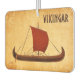 Un barco largo y vibrante con una vela roja vista de perfil desde el lado derecho y superpuesto sobre una imagen de fondo de papel antiguo. También aparece un texto de "madera tallada" que dice "VIKINGAR" (antigua norma - VIKINGS). Personalizar agregando su propio texto adicional.