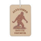 If your car smells like a Skunk Ape, you might need this Bigfoot design hanging air freshener. Two text templates, include one for a personalized name, can both be customized to create the perfect squatchy car freshener.