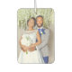 Una encantadora foto de una novia y un Groom, sube fácilmente tu plantilla al refrigerador de aire del coche. En la parte posterior se muestra el nombre de la pareja y la fecha del boda en su color de fondo personalizado. ¡Elige la tuya! Foto de stock: Mi foto personal © 2021