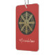 Golden Dharma Wheel on black. The whole piece is in classic dark red, black, and gold.