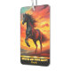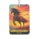Un impresionante caballo negro galopa con gracia a través de un paisaje abierto, simulado contra una vibrante puesta de sol. El cielo está lleno de tonos naranjas, rosados y morados, mostrando nubes dramáticas cuando el sol se pone detrás de montañas lejanas. Esta escena captura la esencia de la libertad y la belleza en la naturaleza.