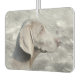 Hermosa cara de emarador sobre una pintura gris a juego como si fuera un perro de fondo amante del aire del coche