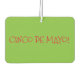 El Air Freshener presenta un ilustracion original de una fila de Cinco de Mayo y diseños temáticos de fiesta, con CINCO DE MAYO! al revés. ¿No ves lo que estás buscando? ¿Necesita ayuda con la personalización? Haga clic en "preguntar a este diseñador" para que se cree algo sólo para usted.