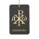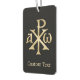 Chi-ro christogram icon with alpha and omega letters. Monogram forming abbreviation for the name of Jesus Christ. Custom background color. Custom text on both sides.
