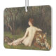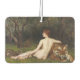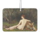 This design features a painting by the British Pre-Raphaelite artist John Collier (1850–1934). It depicts Circe, the female enchantress from Homer’s Odyssey. In ancient Greek mythology, she is the daughter of the sun-god Helios and the ocean-nymph Perse, and her divine lineage gives her both beauty and formidable magical skill. Her power is rooted in potions, spells and transformative enchantments, through which she can alter the physical and mental states of those who cross her path. Odysseus first learns of her through Hermes, who warns him that she is capable of turning men into animals. This warning proves immediately relevant: when Odysseus’s crew encounters her, she welcomes them into her home, offers them food and drink laced with her magic, and then transforms them into pigs. Circe can be seen here reclining in a quiet moment of poised reflection. She occupies a central place in the composition, and her bodily figure is presented with an almost sculptural clarity. The enchantress is not shown as a distant, enthroned sorceress, but as a powerful, sensual figure immersed in a natural world entirely under her command. She is an image of female power and seductive beauty. The painting is composed from behind her, so the viewer looks upon Circe’s bare back as she reclines in a forest clearing. Her posture is relaxed yet unmistakably regal. She lies comfortably on a bed of soft grass, her body angled in a graceful curve. Her pale skin appears luminous against the dark, wild textures of the surrounding woodland. Circe’s ease comes from her absolute dominance over the untamed animals around her. She reclines partly against the powerful body of a tiger, its richly patterned fur forming a vivid contrast to the paleness of her skin. On her other side rests an ocelot, its smaller, sinuous form curled protectively near her. Their poses are calm and almost affectionate, suggesting that these fierce creatures are not merely subdued but devoted, transformed into companions by her magic. The juxtaposition of Circe’s relaxed, human vulnerability with the latent danger embodied by the great cats heightens her aura of supernatural command: these animals are not lounging beside her by chance, but by spellbound loyalty. In the forest beyond her, other beasts move through the shadowed greenery. A puma sits with quiet alertness, its sleek shape partially obscured by foliage. Wild boars can also be seen: they are solid, vigilant and strangely compliant. The presence of such diverse and normally incompatible creatures reinforces the idea that Circe’s magical power has rewritten the natural order. The animals gather around her as if drawn by an invisible force, forming a protective, enchanted court. The thick trees and tangled undergrowth surrounding them create a deep, almost primeval atmosphere, heightening the sense that Circe exists outside ordinary human realms. The overall mood of the painting is one of dangerous tranquility: a serene scene built on enchantment that is potent enough to tame predators and alter the wild itself.