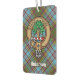 Insignia escudo del clan Anderson rodeada por una correa y hebilla sobre el fondo del tartán. Texto personalizado en ambos lados.