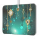 El oro, las llaves antiguas con engranajes y diales cuelgan de las cadenas de oro sobre un fondo verde luminoso.