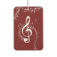G Clef entre notas de música en un rojo profundo. El fondo rojo oscuro hace que aparezcan las notas blancas brillantes. Diseño de música blanca y marrón,