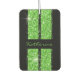 Luminosas huellas de neumático de rayas de purpurina brillantes verde sobre un personalizado de aire fresco personalizado con un nombre de guión elegante (o texto personalizado), y un fondo de color negro editable y colores de letra y texto personalizado, la perfecta decoración de los autos interiores para el entusiasta de las carreras de autos, o como un gracioso regalo de chiste para un mal conductor o una flamante celebración de licencias de conductores. Envía un mensaje al diseñador (Papel de uva) para ver los cambios de color personalizado e incluye una foto o un enlace del color que estás buscando. Las obras de arte de rayas de carreras de purpurinas son originales ©Paper Grape, todos los derechos reservados.