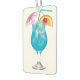 Cóctel azul de verano con paja, rodaja naranja, cerezo y paraguas de papel.