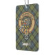 Emblema de la cresta de Campbell rodeado de una correa y hebilla sobre fondo de tartán. Texto personalizado en ambos lados.