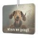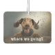 "¿A dónde vamos?" texto sobre una linda foto de perro (se puede cambiar a tu perro) en un divertido ambientador. Un regalo asequible para la familia, amigos o crear para ti mismo, son de doble cara y están disponibles en diferentes formas y varios asombrosos olores de larga duración que eliminan los aromas.