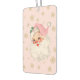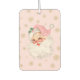 This cute vintage whimsical Christmas car air freshener features a fun pink retro Santa with gold snowflakes on a pink background.