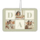 Give Dad a gift he'll cherish. This photo collage air freshener features three of his favorite square family photos, along with the chunky sage green letters "D-A-D" in alternating white squares on a sage green background. An ideal gift for Father's Day, Dad's birthday or other special occasions.