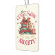 A fun and cheerful Christmas holiday design showcases a stack of red and green books tied with a festive bow. Beside the books are a lit candle and a candy cane, surrounded by hearts and stars for extra charm. The colorful text reads: "Dear Santa, only my books were naughty." This delightful design is available on a variety of products, making it a perfect gift for book lovers.
