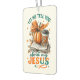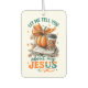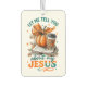 Diseño pacífico y colorido con una escena otoño/otoño con un libro abierto, calabaza y café. El colorido texto inspirador dice: "Déjenme contarles acerca de mi Jesús". Este diseño está disponible en una amplia variedad de productos.
