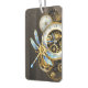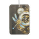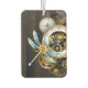 Diales antiguos con artes de oro y latón, decorados con libélula mecánica sobre fondo marrón, rayado. Steampunk.