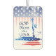 Inspirador ambientador retrata la Estatua de la Libertad con un fondo de las estrellas y rayas de la bandera estadounidense y muestra la bendición, "DIOS bendiga a Estados Unidos".