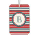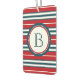 Diseño de temática náutica con decoración monográfica en forma redonda con ilustracion de cuerda sobre fondo rayado azul, rojo y blanco