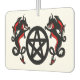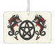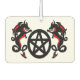 Dos dragones rojos y negros con un pentáculo pagano negro en el centro