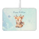 Un bonito ciervo personalizado con una bufanda de yeso se sienta alegremente entre copos de nieve. Las palabras "Felices Fiestas" se pueden cambiar fácilmente a cualquier mensaje que desees.