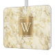 This elegant design features a background image of white marble embellished with gold veins. Personalize it with your monogram initial in serif font on a double-bordered gold faux brushed metal rectangle.