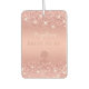 Refresca la celebración con este ambientador de aire para despedida de soltera Elegant Rose Gold Luxe Shimmer. Con un suave fondo degradado en rosa dorado, delicados destellos rosados y una elegante escritura personalizada con el nombre de pila de la novia y la frase "Bride to Be", es un recuerdo chic y práctico para la ocasión.