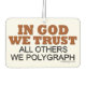 En Dios confiamos. ¡Todos Los Demás Que Polígrafo! Parodia divertida e irónica del lema estadounidense.