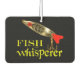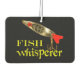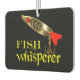 Gracioso parador de coches de pesca para todos los pescadores y pescadores. Pescado Whisperer en texto con un señuelo de pesca a todo color cerca de la parte superior. Impreso delante y atrás.