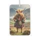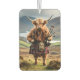 Vestida con un kilt y chaqueta en las Tierras Altas de Escocia, una vaca de las Tierras Altas sostiene una gaita.