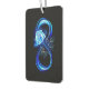 Luminous infinity symbol with glowing, beautiful, lushly blooming rose made of blue flames on black background.