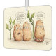 Divertido Pun sobre las papas. Un dibujo de tres papas. La primera pregunta: ¿Por qué nos llaman papas? No tenemos dedos de pies. El tercero tiene los pies grandes con los dedos de los pies grandes y dice: Hablen por ustedes mismos. Borde de fondo verde limón. Patatas marrones divertidas y pequeñas que cuelgan en el jardín. Diseño de Arte de Dibujo personalizado. Dibujo de Donna Léger, de Irony Designs. Todos Los Derechos Reservados.