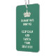 Esto es gracioso y hace un gran regalo para la persona cuyo manejo podría ser mejor. Personalice esto agregando el nombre de su amigo a la parte superior y les encantará. Es una manera divertida de hacer que todos se cuelguen en el auto. Mantenga la calma y abróchese el cinturón de seguridad. En un verde esmeralda oscuro, con texto blanco, es adecuado para hombres y mujeres. Hay otros colores disponibles. Si lo desea en un color que no se muestra, póngase en contacto con el diseñador que está más que contento de ayudarle.