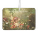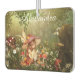 Una linda hada con un gorra de setas rojas habla con una pequeña mariposa mientras se sienta en silencio sobre un tronco en el bosque. Está rodeada de hongos rojos y blancos y de margaritas blancas.