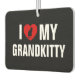 Celebrate your favorite furry family member on every drive with this fun “I ❤️ (heart / love) My Grandkitty” car air freshener. Featuring a bold cat silhouette inside a bright red heart, this playful design is perfect for proud grandparents of a beloved grandkitty. It adds a cheerful touch to commutes, errands, and road trips while keeping the car smelling fresh. A delightful little gift for any cat‑loving grandma or grandpa, it’s the purr-fect way to show off just how much that special grandkitty means.