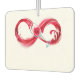 Símbolo infinito de flujo continuo de vino tinto vertiendo en vidrio de vidrio sobre fondo blanco.
