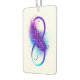 Infinity symbol with a beautiful feather painted in purple and blue bright colors on white background.