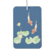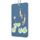 Un paravilante de aire con una idílica pintura de la acuarela zen de dos koi en un estanque koi con nenúfares de agua blanca y colchonetas de nenúfares (fondo azul).