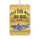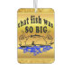 Dos manos separadas mostrando lo grande que era el pez. Con un pez en el centro y un barco abajo con agua. Frenar y mostrar el pez que nunca obtuviste.