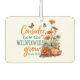 Diseño pacífico y colorido con una hermosa escena otoño/otoño con calabaza, mariposas y flores caídas. El colorido texto inspirador dice: "Consideren cómo crecen las flores silvestres. Lucas 12:27". Este diseño está disponible en una amplia variedad de productos.