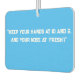 Mantente a salvo y disfruta de un delicioso olor con nuestro "Mantén tus manos a los 10 y 2, y ¡tu nariz a la "Fresca"!", ¡más fresco! Este divertido recordatorio enfatiza la postura apropiada para conducir mientras asegura que su auto huele asombroso. Ideal para viajes diarios, viajes por carretera, o como un regalo para cualquier conductor, este refrescante de aire añade un toque de humor y frescura a su viaje. Manténgalo a salvo, manténgalo fresco y disfrute de cada viaje en coche.
