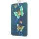 Oro volador, mariposa de joyas sobre fondo textural azul. Diseño con mariposas.