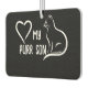 Este divertido ambientador de aire del auto cuenta con un corazón blanco, una silueta de gato blanco y un texto blanco que dice: (corazón) ama a mi nieto. Este ambientador hace el regalo perfecto para los padres mascotas que quieren expresar amor por su hijo gato.