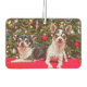 Dos chihuahua posan frente a un árbol de navidad mientras les deseaban una Feliz Navidad y un Feliz Año Nuevo. Debbie Quick de Debs Creative Images tomó/creó la imagen de los chihuahua y el diseño a su alrededor. Para ver más fotografía de Debbie, visita su sitio web en: www.debscreativeimages.com