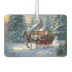 Santa conduciendo un trineo de un caballo para entregar regalos de Navidad en un pequeño pueblo