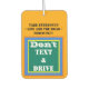 Tomen en serio la vida de todos y el camino, no envíen mensajes de texto y la unidad está escrita en el frente. cuadrado geométrico con fondo verde, amarillo, azul contra naranja. No desviar el controlador está escrito al revés. Diseño original © TamiraZDesigns.