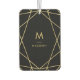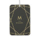 Este moderno ambientador presenta un fondo negro profundo, con un diseño geométrico de color dorado falso más tu nombre e inicial en el centro.