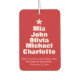 Ambientador Personalizado blanco rojo árbol de Navidad nombres